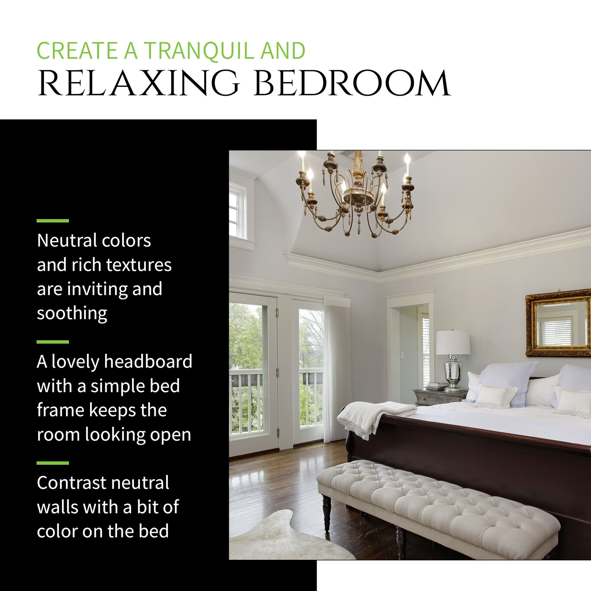 - Choose a soothing color scheme: Choose calming and neutral colors for your walls, bedding, and decor. Soft blues, greens, grays, and creams are great choices for a tranquil bedroom.